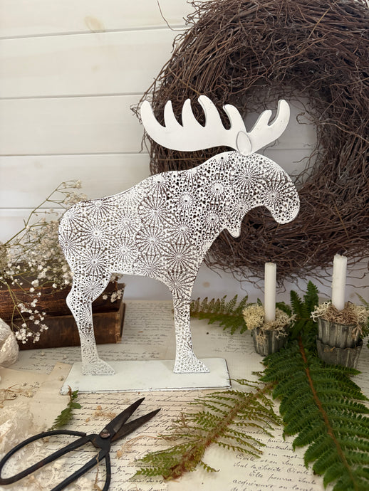 White Metal Moose – Vintage-Inspired Christmas Decoration