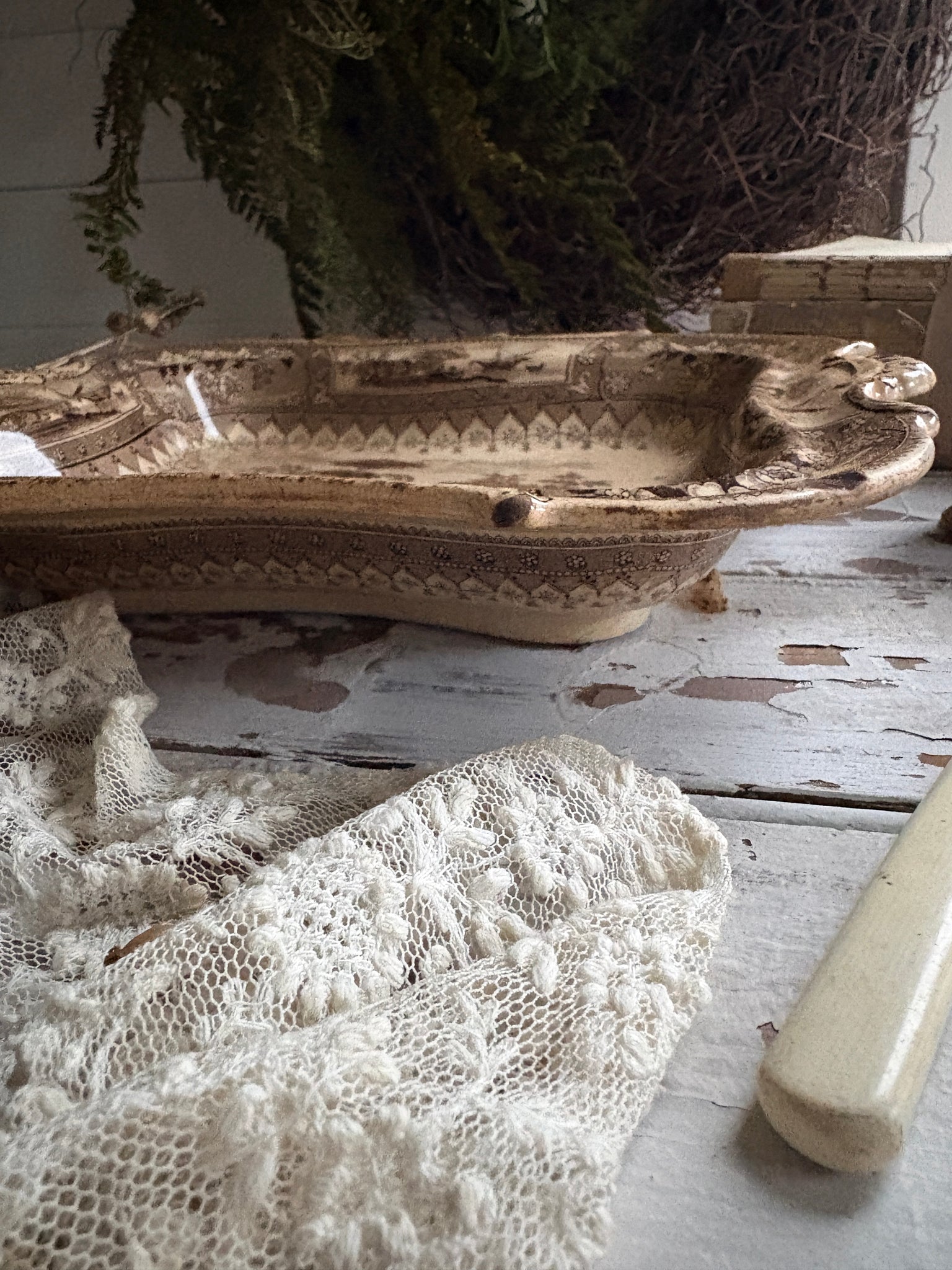Because of this, it is best suited for decorative use only — ideal for styling a dresser, seasonal displays, kitchen shelving, or adding to a curated wall of antique plates. Not recommended for food use or regular washing.