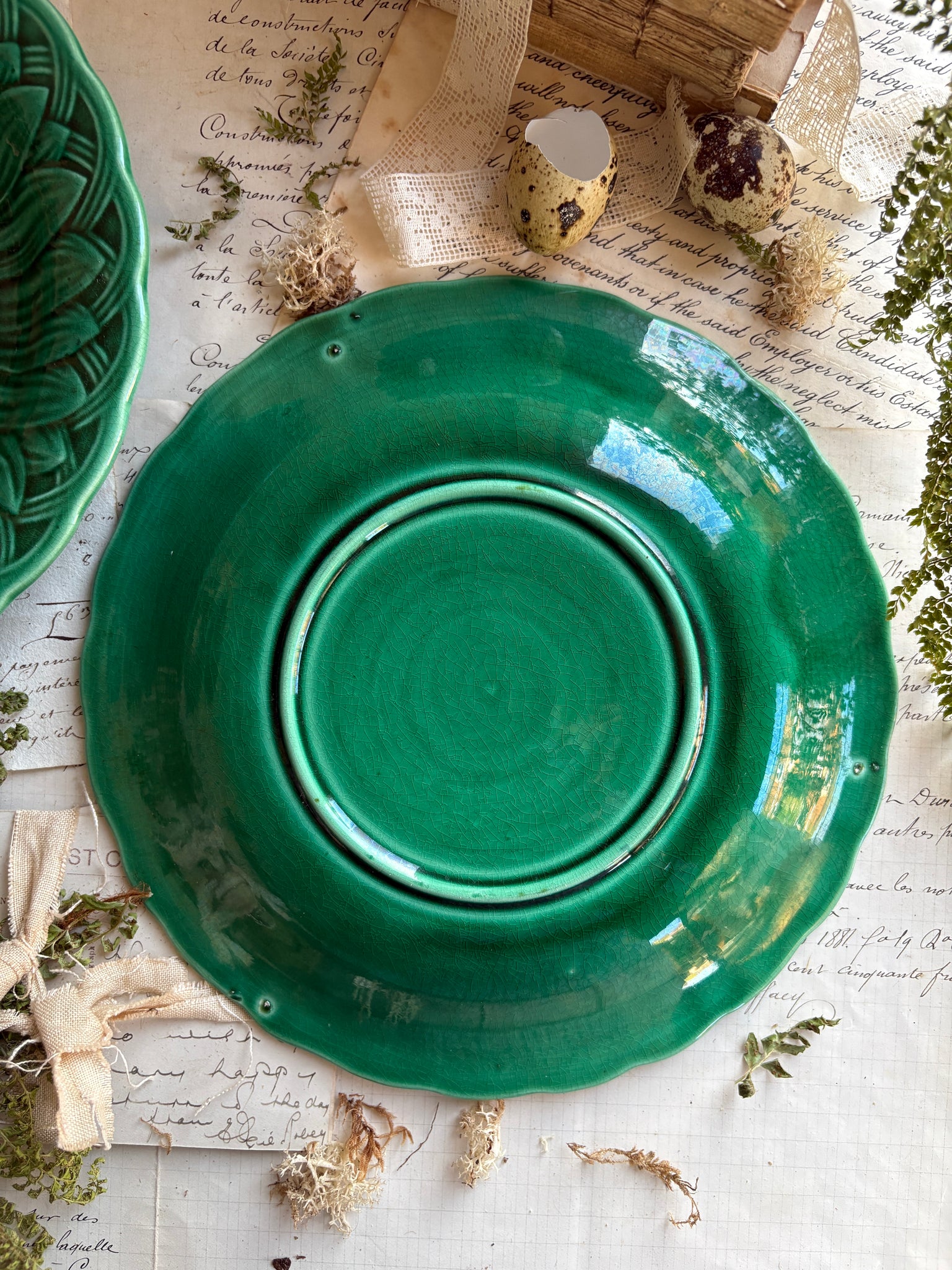 Antique Majolica Green Sunflower Plates (Sold Separately)