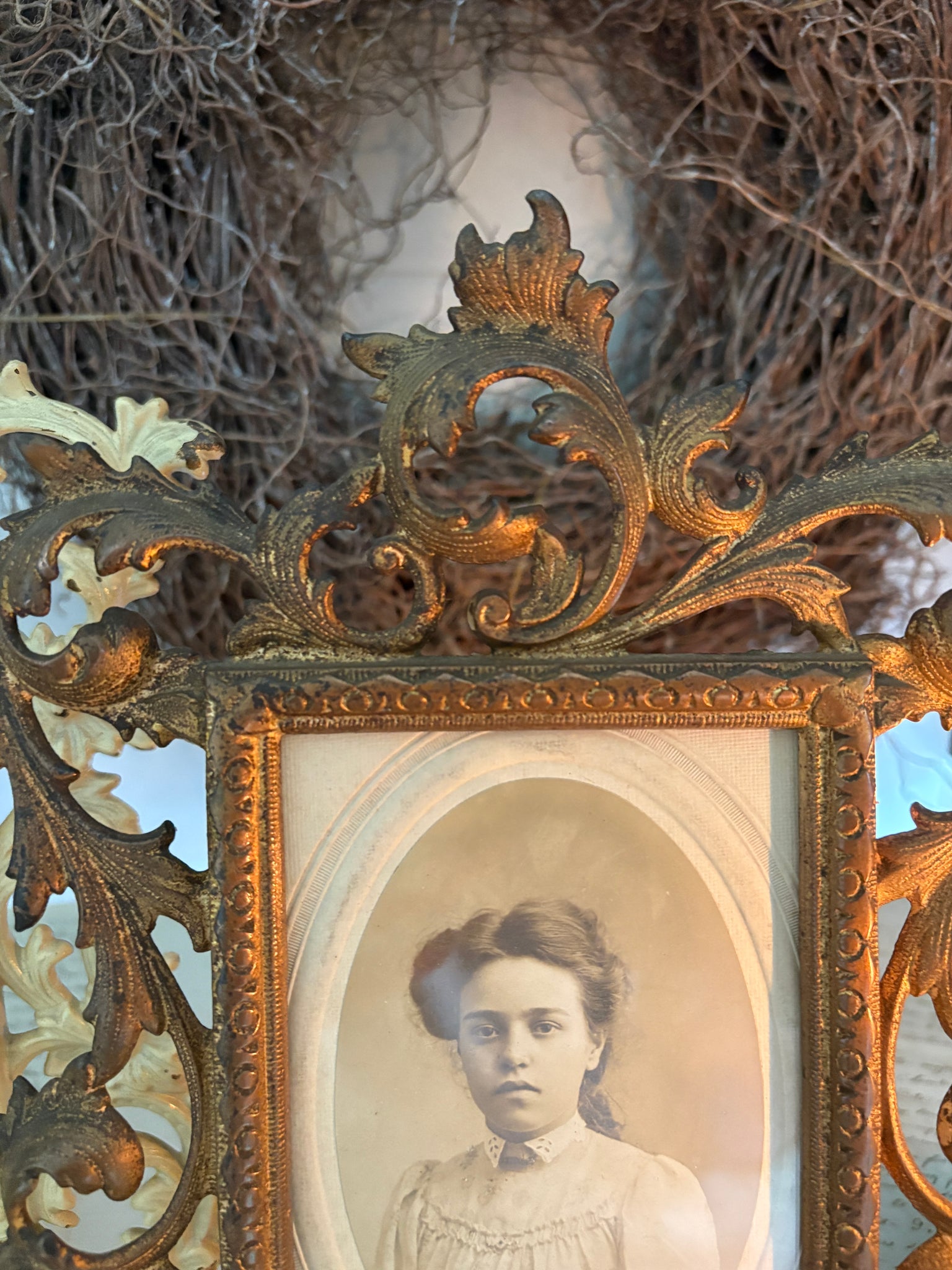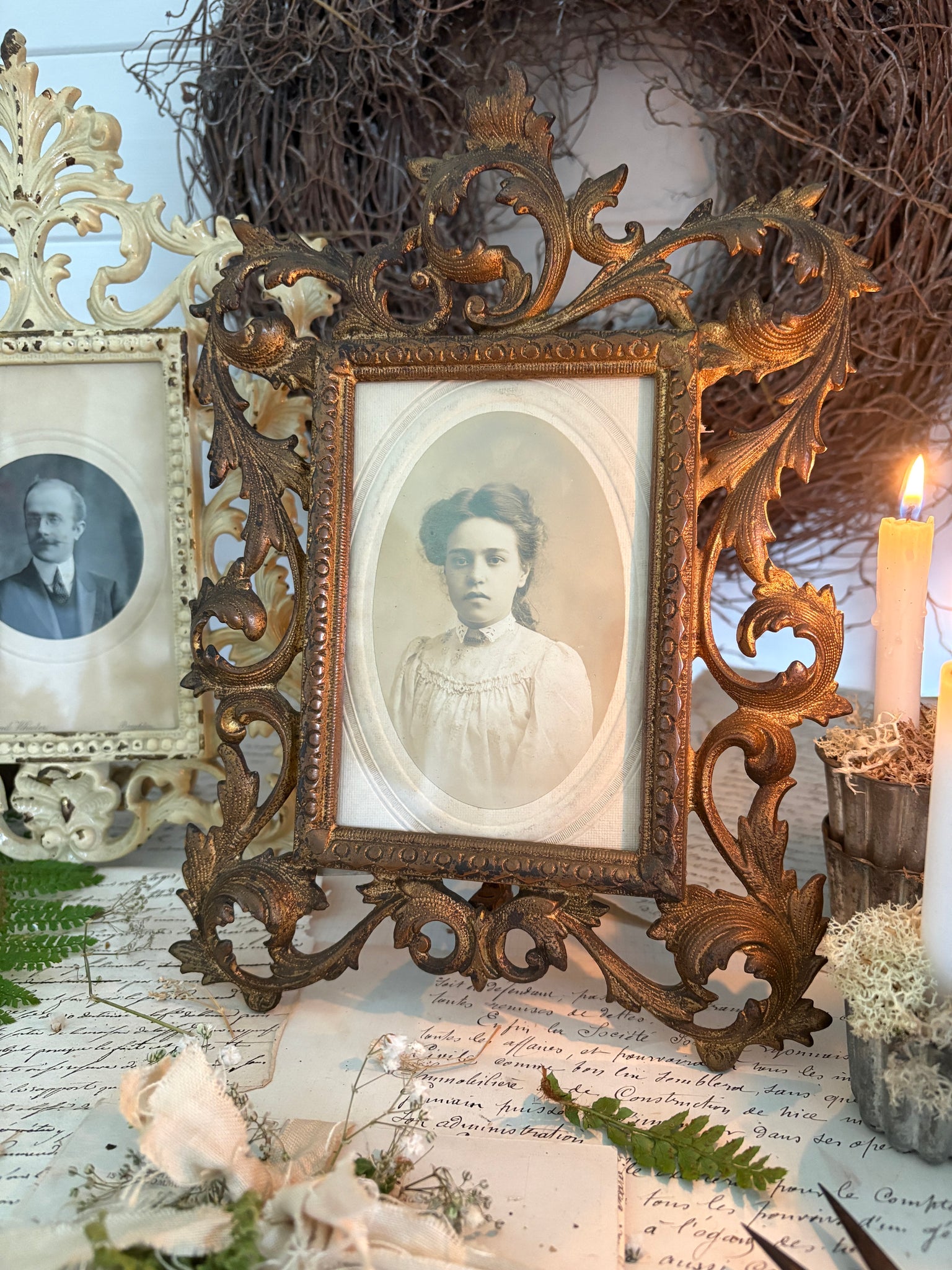 Antique Solid Cast Brass Photo Frame – Ornate | Original Antique | Easel Stand & Glass