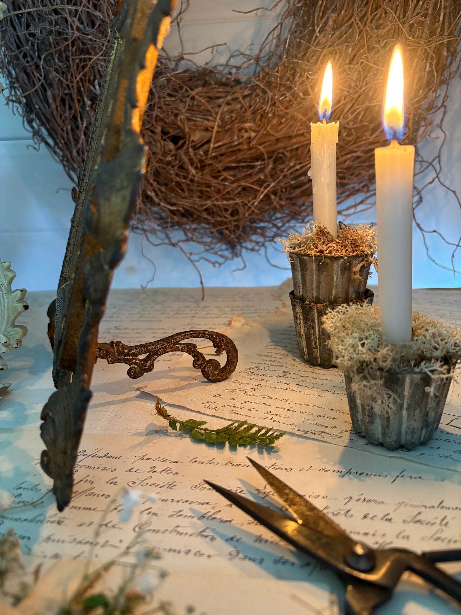 This version has been painted in a soft cream, now showing a wonderfully distressed, timeworn look that reveals glimpses of the brass beneath. Its shabby-chic charm makes it perfect for cottage-style or vintage-inspired interiors.