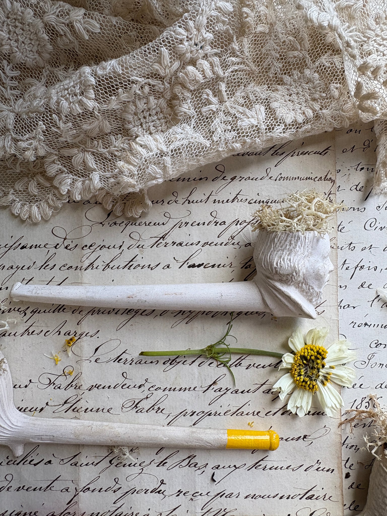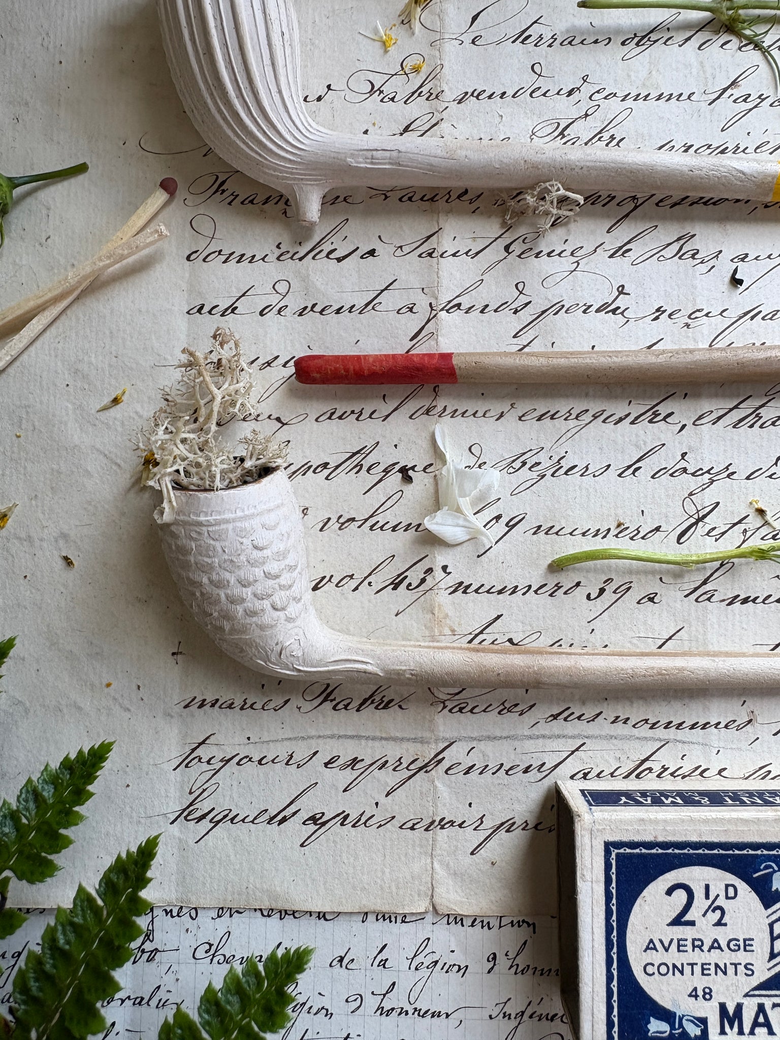 This collection of four antique clay pipes brings together the simple elegance and decorative artistry of the 19th century. Once everyday objects, clay pipes were often smoked and discarded, making surviving examples like these increasingly scarce.