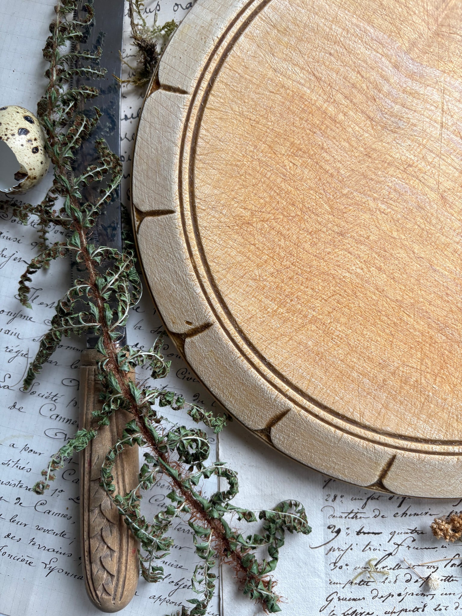 Bring a touch of timeless charm to your kitchen with these beautiful round vintage bread boards, each rich in character and steeped in history. Once a staple in traditional English homes, these boards have been lovingly preserved — their gentle wear and patina telling the story of countless shared meals and gatherings around the table.