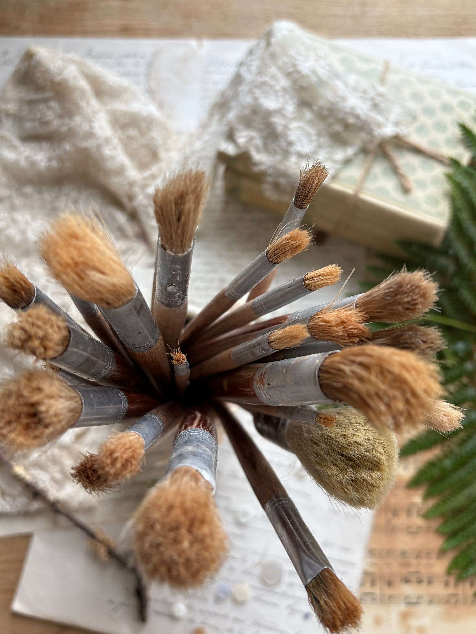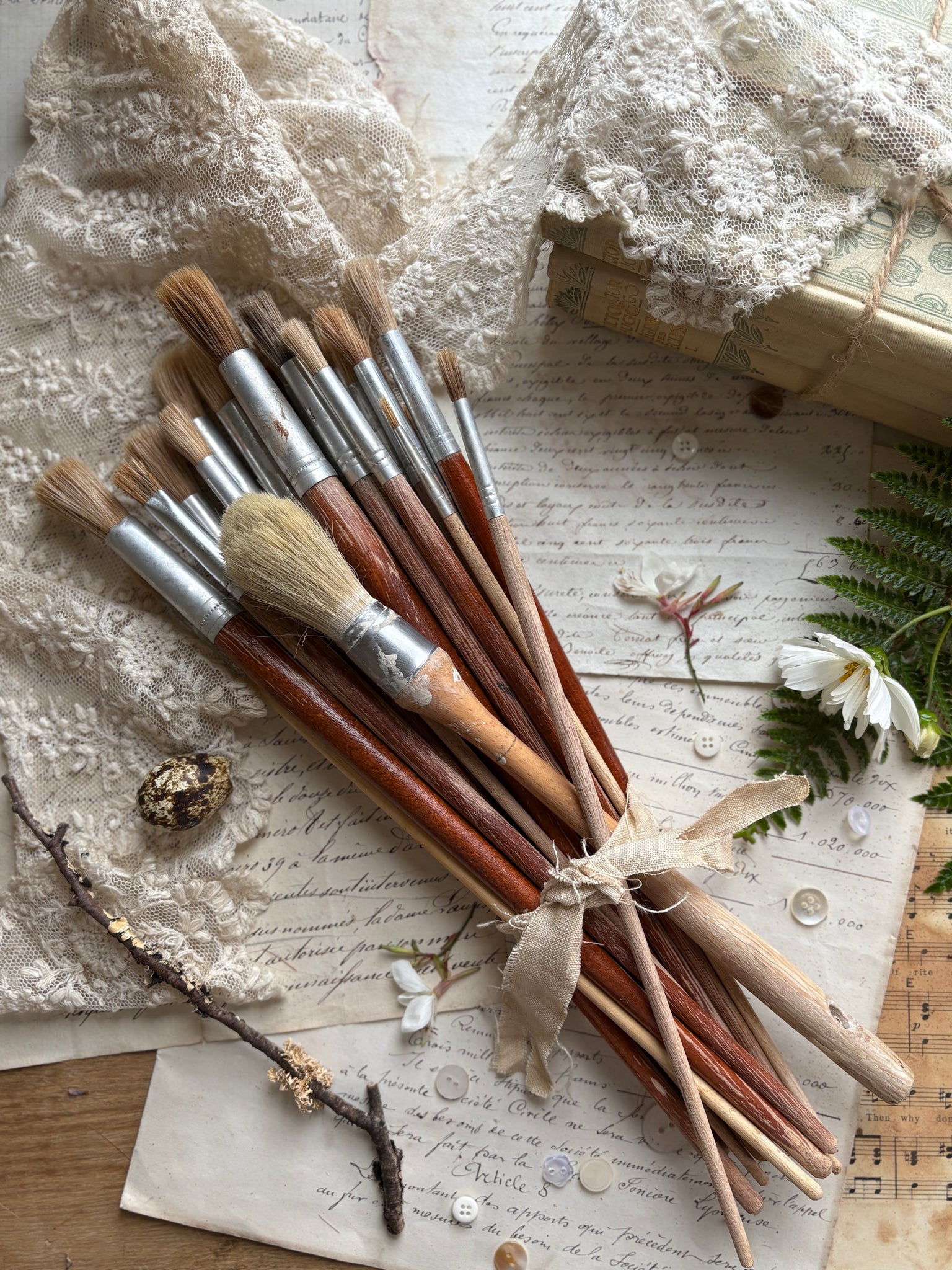 Displayed in a pot, arranged in a line, or styled on a desk or shelf, these antique artist’s brushes make a wonderful visual statement—celebrating not just the finished artwork, but the tools and labour behind it.