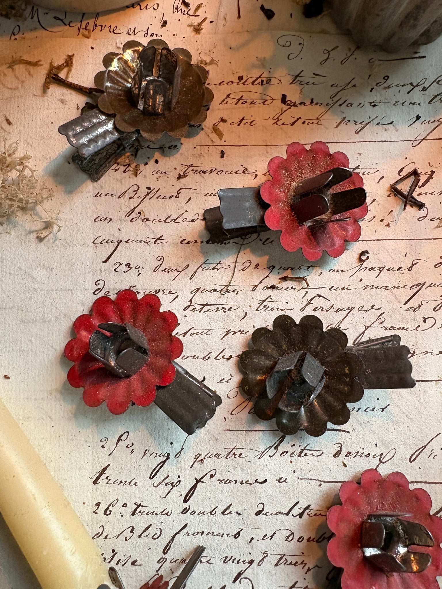 Set of 7 Vintage Metal Christmas Tree Candle Holders – Red, Cream & Silver