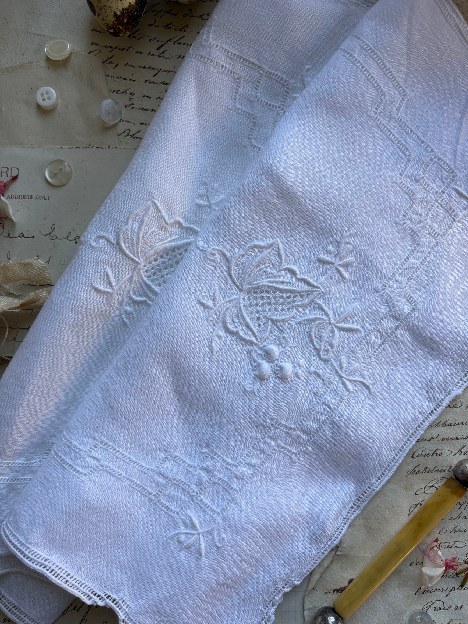 Likely mid-century in origin, these napkins would have been treasured in a well-appointed home—brought out for special dinners, Sunday lunches, or celebratory gatherings. Their oblong shape makes them ideal for formal place settings or simply adding a touch of vintage beauty to everyday dining.