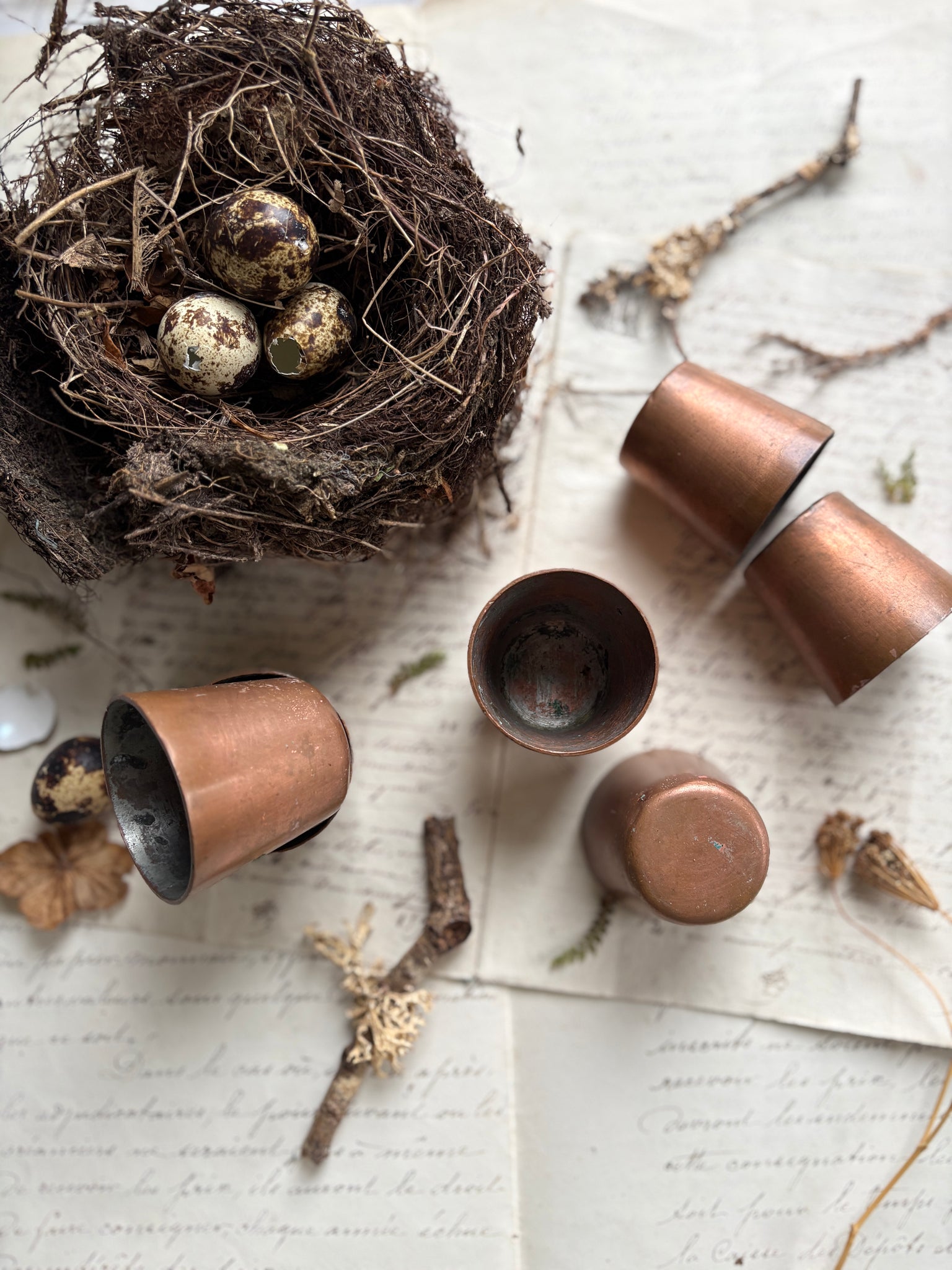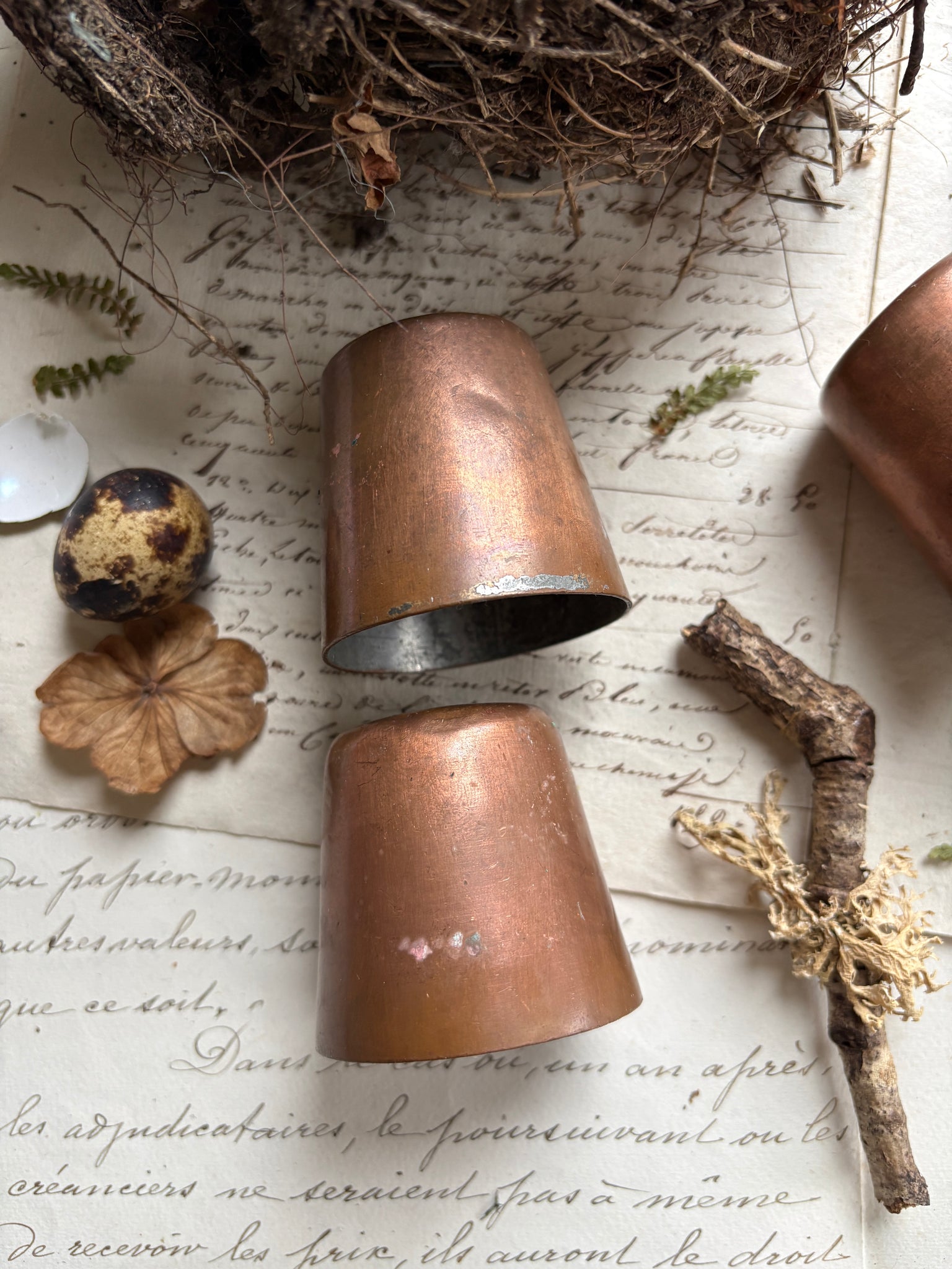 Now, these copper cups make striking decorative objects. They suit country house interiors, hunting lodges, rustic kitchens, or vintage bar displays, and can also be used as styling props, candle holders, or part of a curated shelf arrangement. Their patina and weight give them an authenticity that modern reproductions simply can’t replicate.