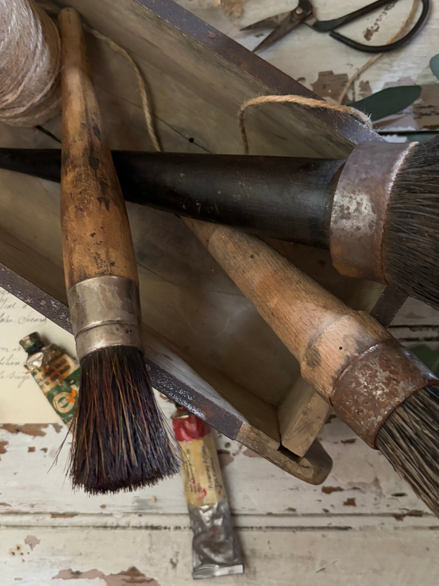 These timeworn tools were once staples in the hands of artists, and now they offer a beautifully aged patina that only decades of use can create. Whether displayed in a ceramic pot, laid in a curated vignette, or simply collected for their aesthetic charm, these brushes are loved for their decorative appeal as much as their past function.