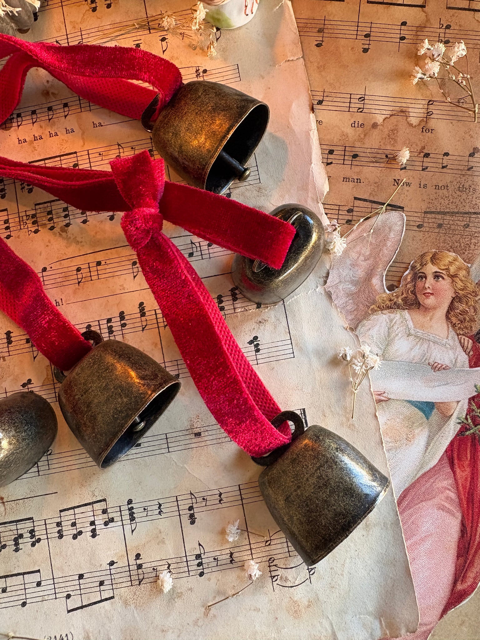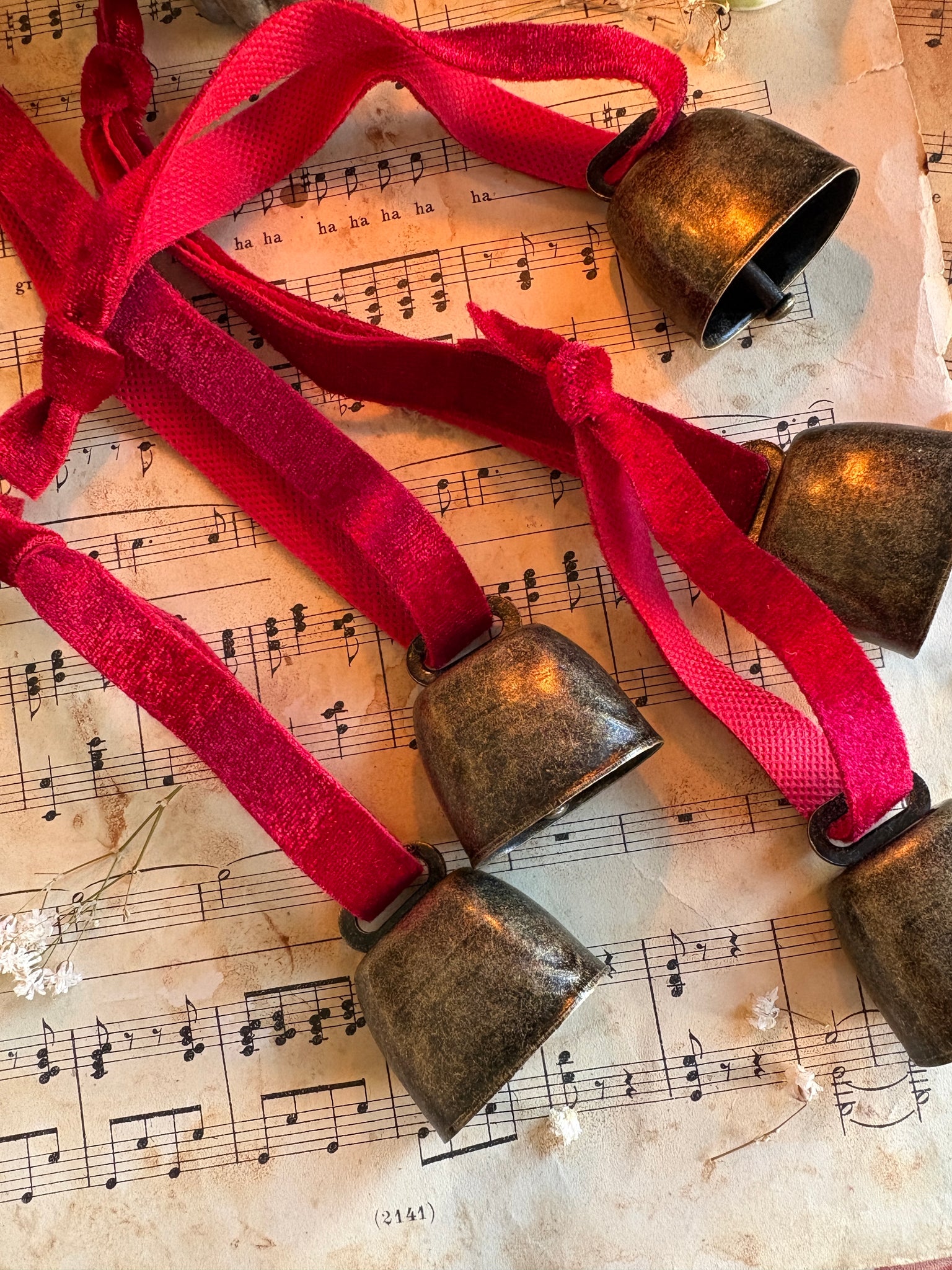The small velvet ribbon cow bells echo the charm of countryside Christmases gone by. Inspired by classic farmhouse décor, they were the kind of ornaments traditionally tied to winter garlands or hung by the hearth, filling the home with a gentle, festive jingle.
