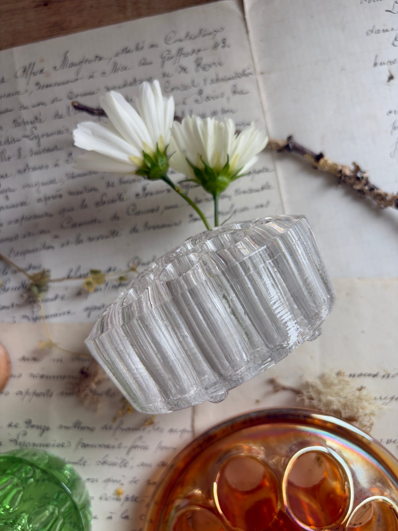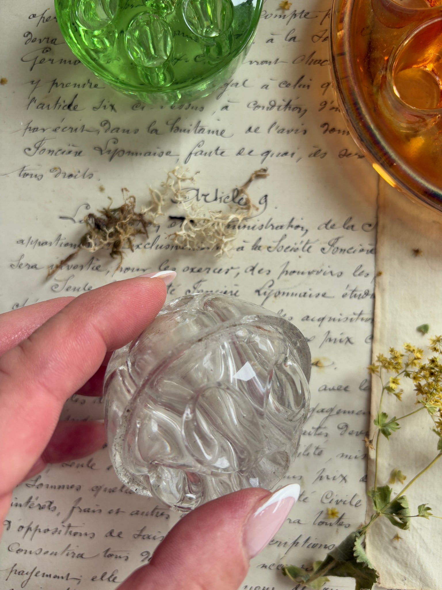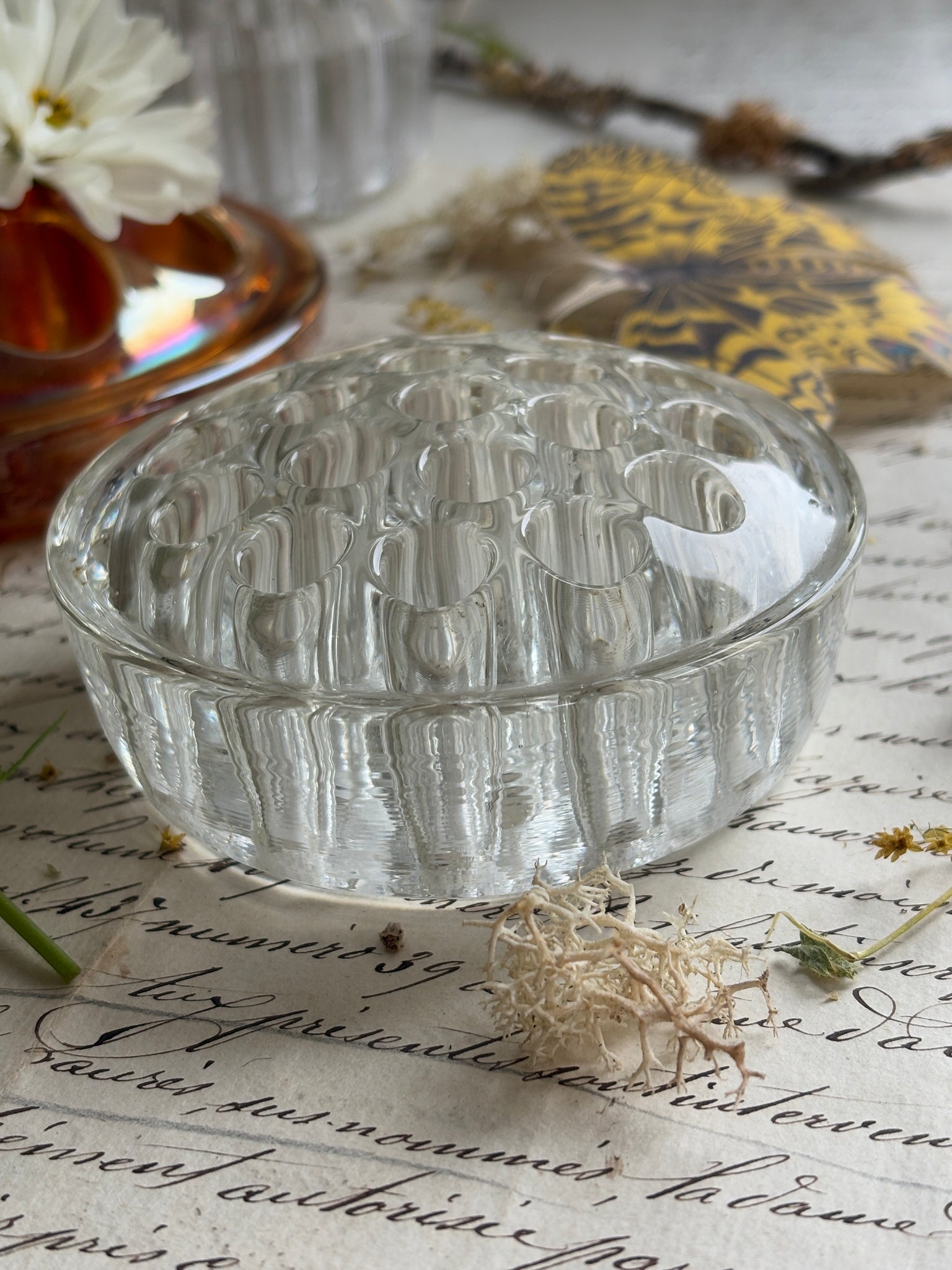 Add vintage charm and floral function to your home with our collection of glass flower frogs, once essential tools for arranging flowers with ease and elegance. Designed to sit inside vases, bowls, or jars, these sculptural glass pieces help hold flower stems in place—ideal for creating beautiful, balanced arrangements.