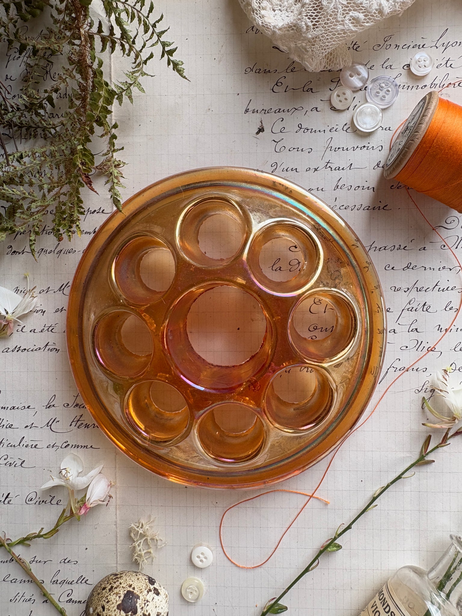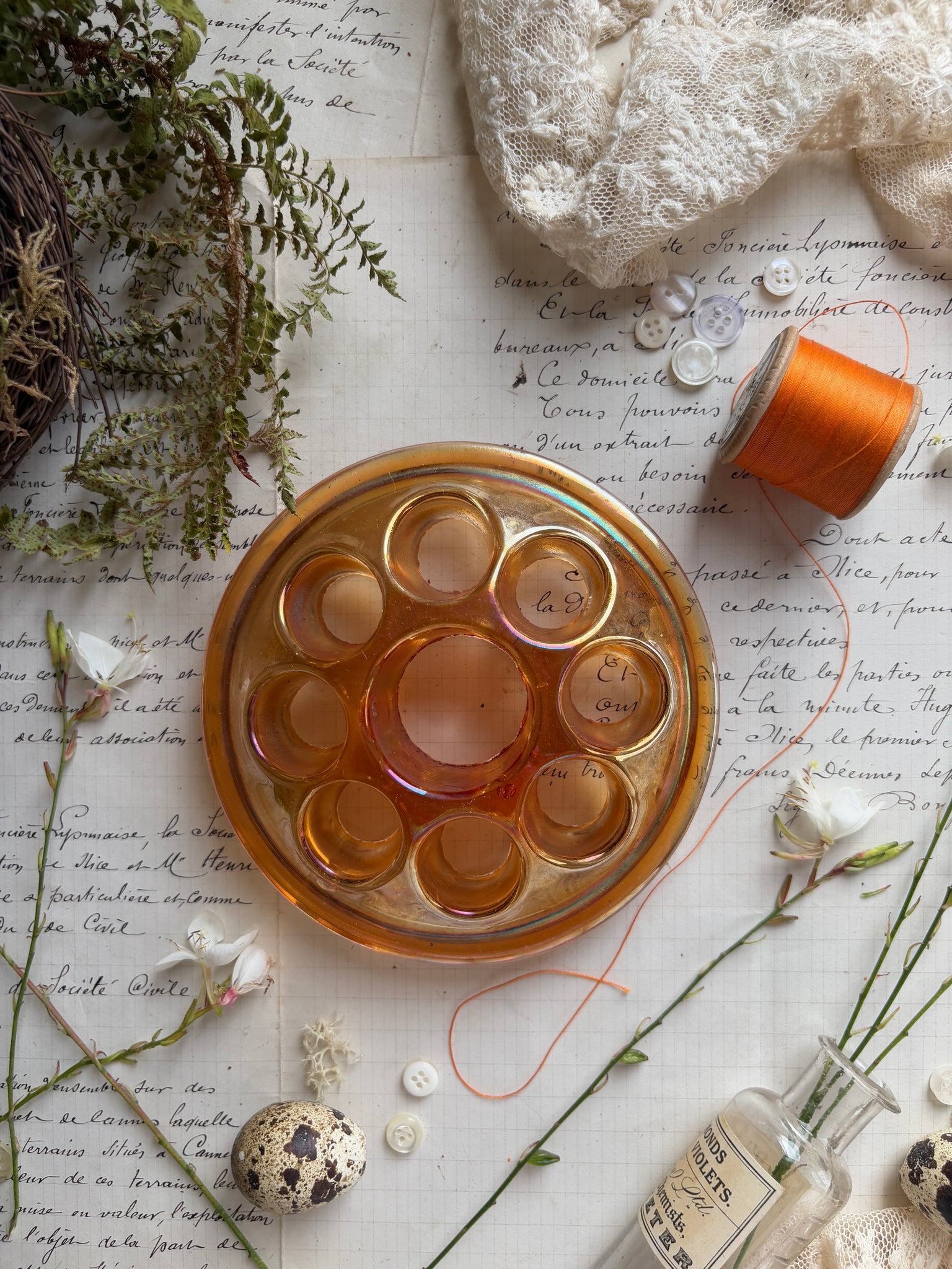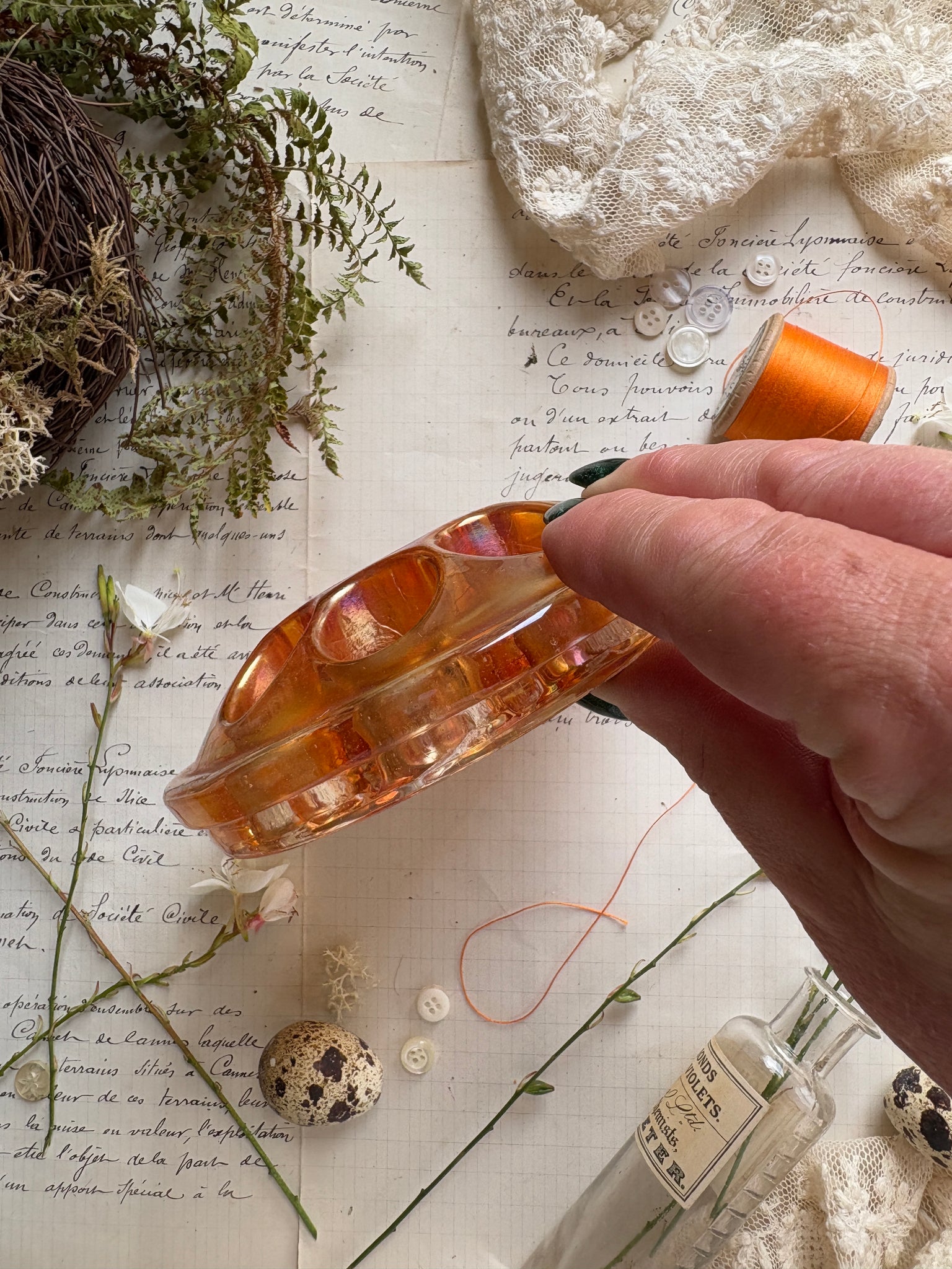 Each piece is unique and sourced from the early to mid-20th century, available in a range of sizes, shapes, and colours, including clear, carnival glass and green. As authentic vintage items, some show signs of age such as minor nibbles or slight imperfections—adding character and history to each frog.